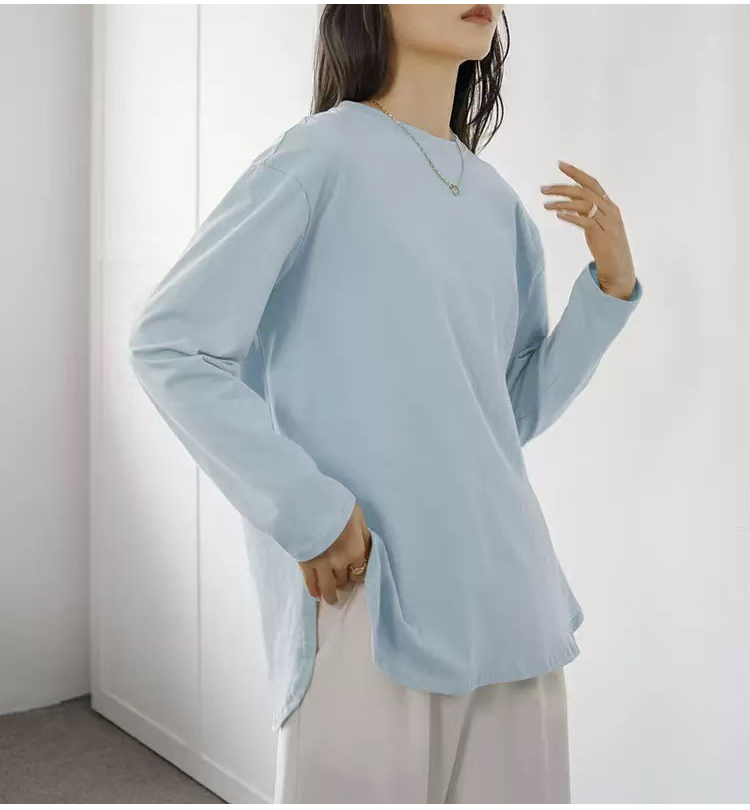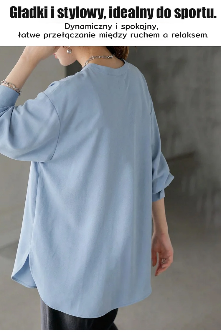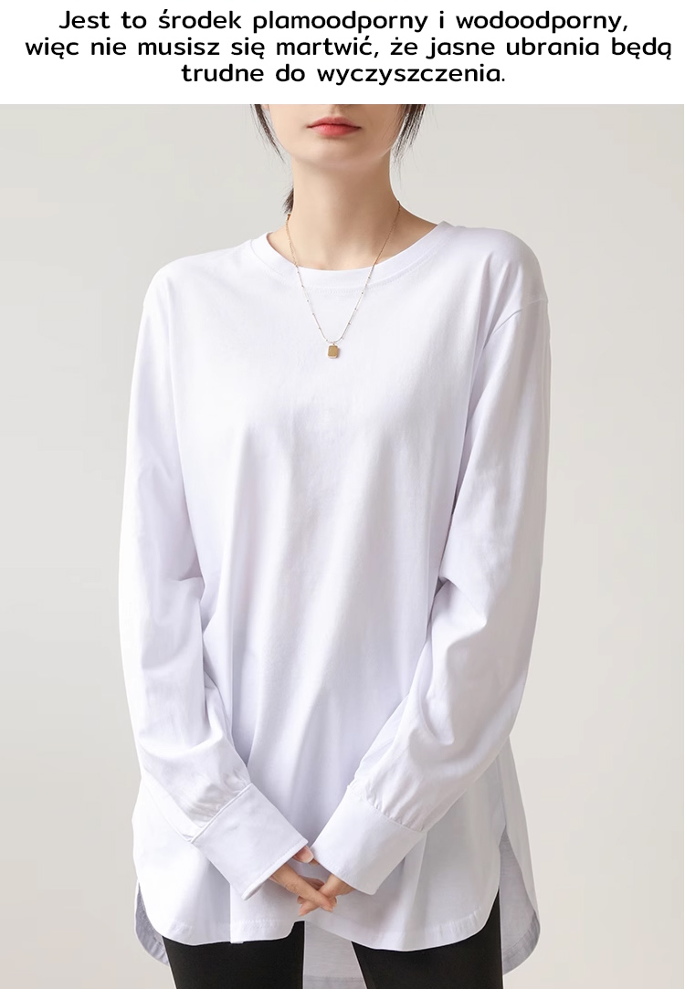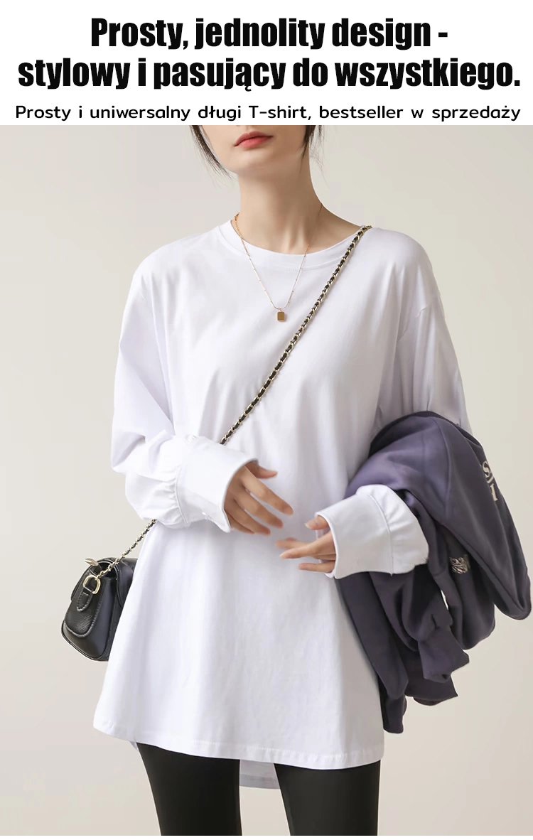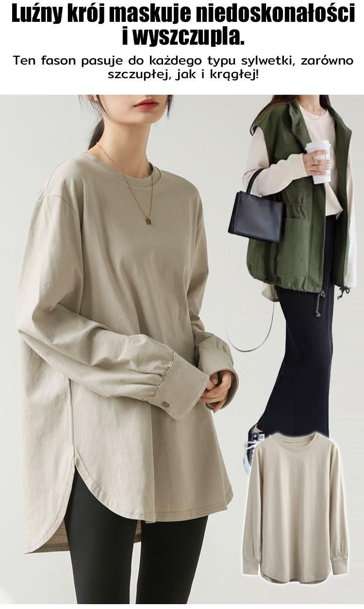 Luźny, swobodny, jednolity kolor, okrągły dekolt, długi rękaw