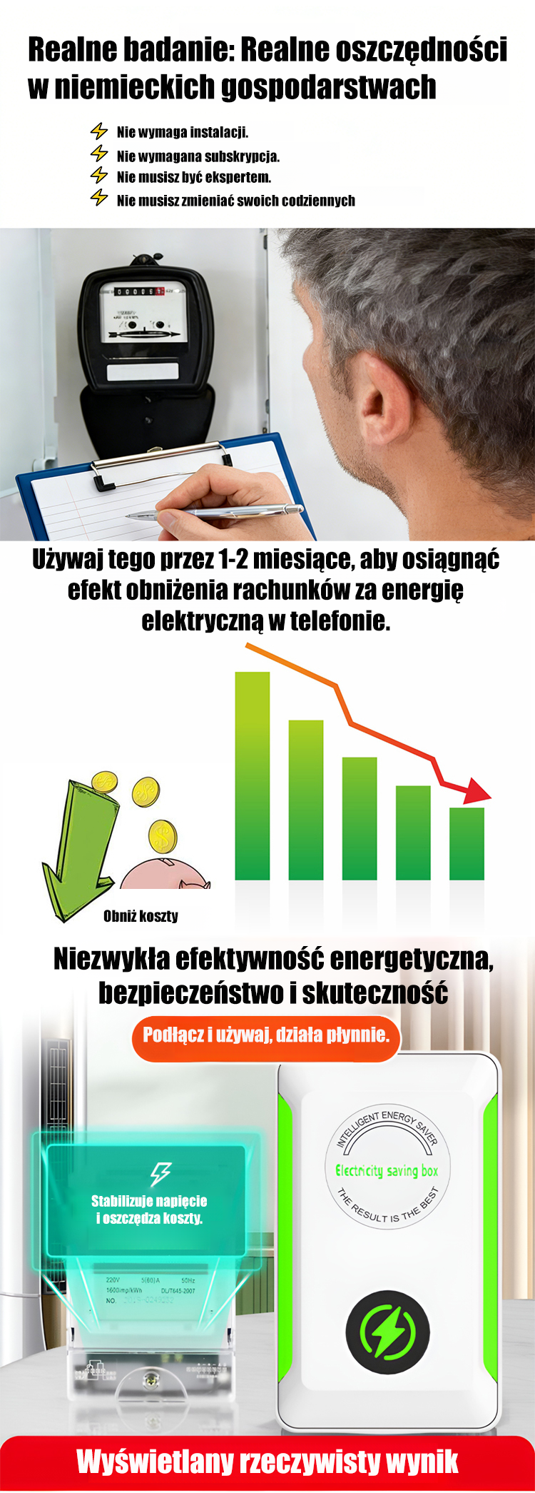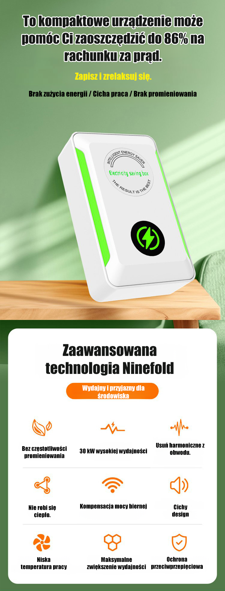 Oszczędzaj 86% energii: Wysoko wydajny oszczędzacz prądu