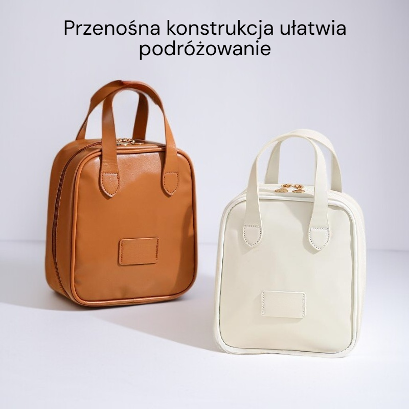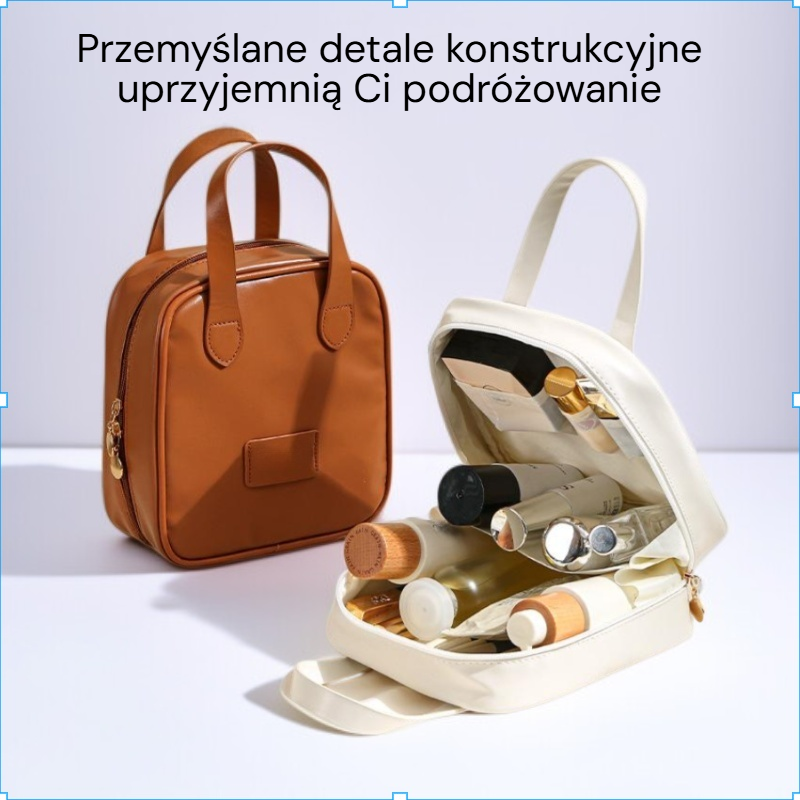 Przenośna kosmetyczka ułatwia organizację kosmetyków podczas podróży, wykonana z trwałych materiałów, lekka, wodoodporna, z praktycznymi przegródkami.