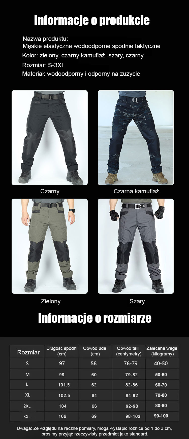 Męskie elastyczne wodoodporne spodnie taktyczne