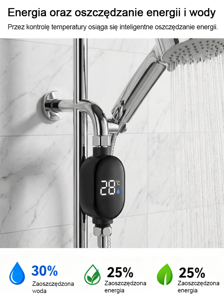 Inteligentny, wodoszczelny wyświetlacz temperatury do słuchawki prysznicowej