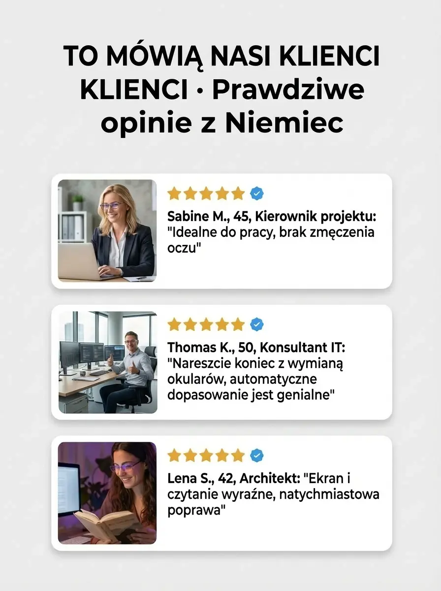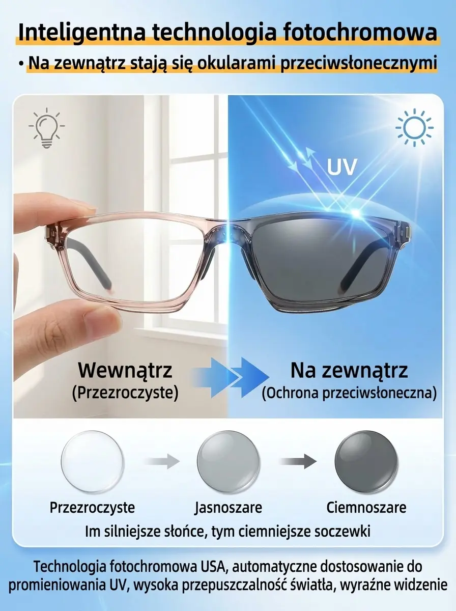 Wyprzedaż awaryjna w magazynie przygranicznym! Luksusowe okulary inteligentne z produkcji niemieckiej wykorzystują zaawansowaną technologię fotoczułą z Monachium, regulują soczewki automatycznie w 0,1 sekundy i blokują 90% światła niebieskiego. Są całkowicie odporne na parowanie, ważą zaledwie 6 gramów i dopasowują się do różnych wad wzroku, w tym starczowzroczności oraz astygmatyzmu. Posiadają pełne certyfikaty Unii Europejskiej, oferują 10-letnią gwarancję oraz 14-dniową bezpłatną zwrotę towaru. Dwie pary kosztują zaledwie 198 złotych polskich, co jest poniżej kosztu produkcji! Dostawa pod drzwi, ograniczona ilość towaru – nie zwlekaj z zakupem!