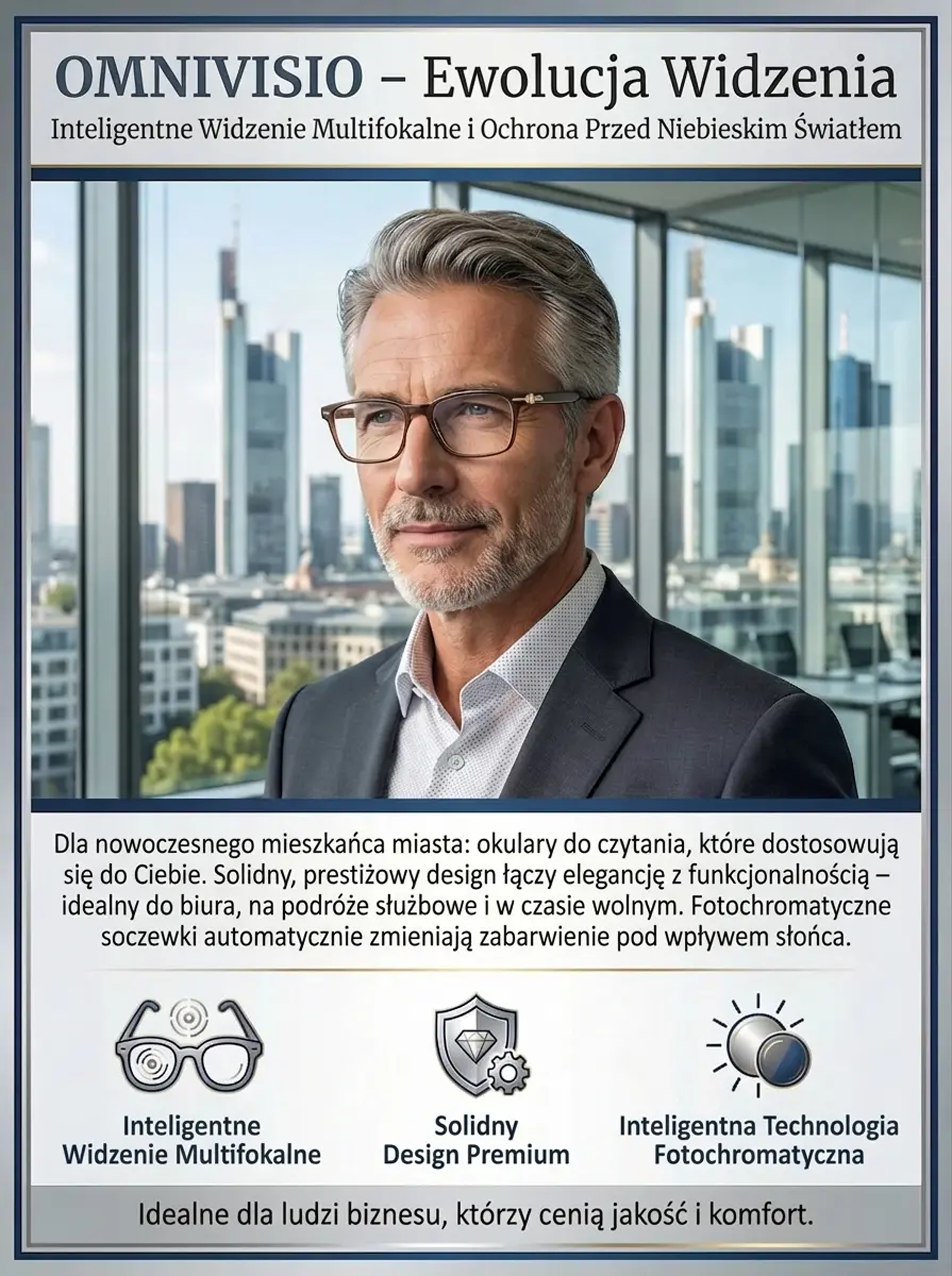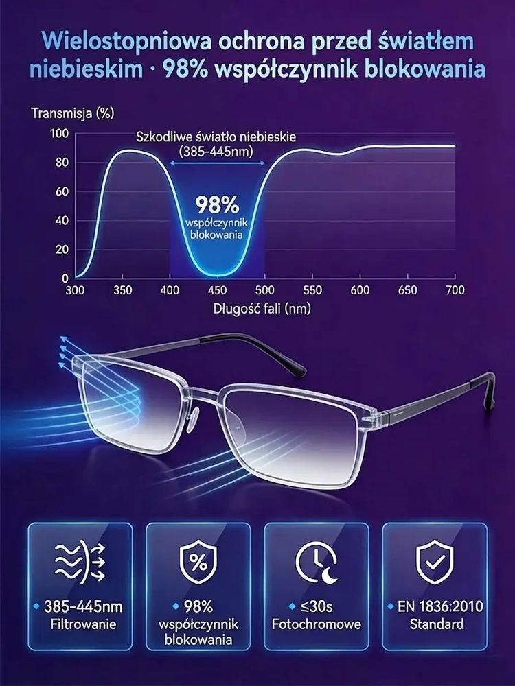 Fotoczułe, wysokiej klasy okulary do czytania z ochroną przed światłem niebieskim