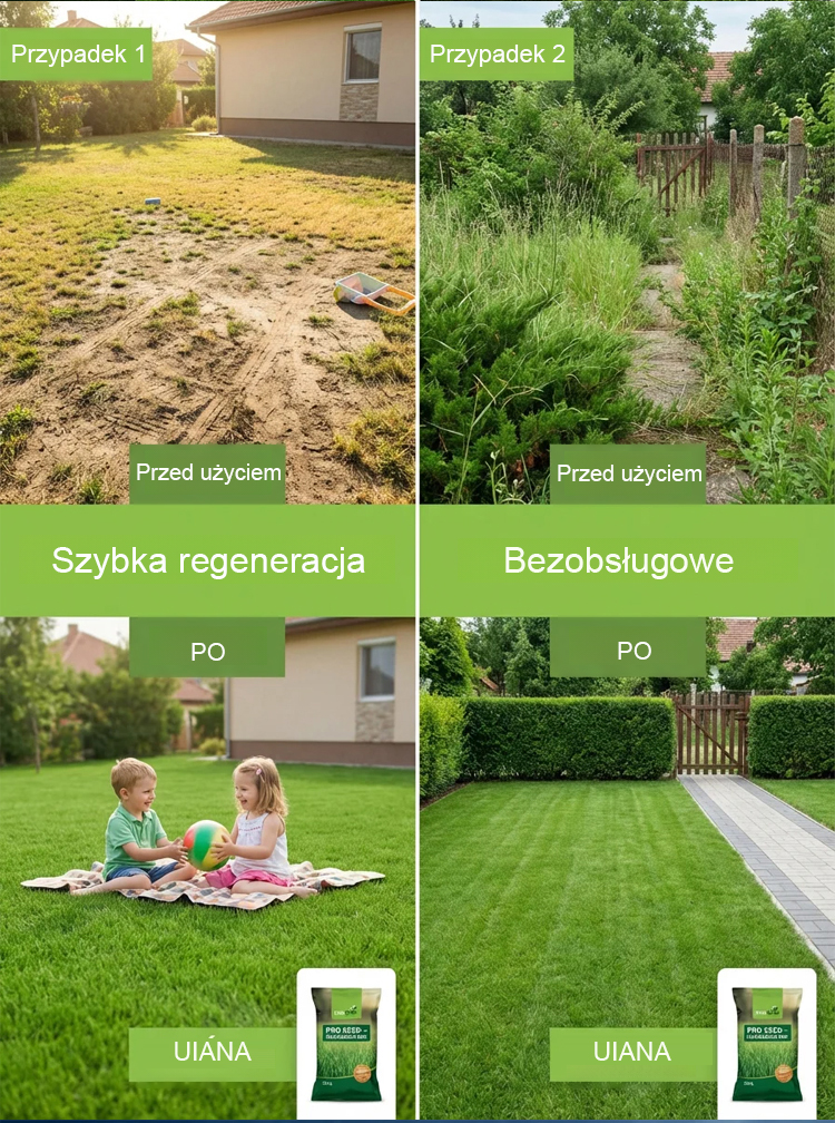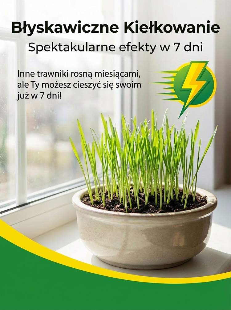 Oszczędź czas i pieniądze dzięki nasionom trawy nowej generacji. Kiełkowanie w 7 dni, pełna gęstość w 45 dni. Trawa przestaje rosnąć przy 3 cm, co eliminuje potrzebę koszenia. Odporna na mróz do -15°C i intensywne użytkowanie. Produkt posiada certyfikat UE i 95% skuteczności. Miękka struktura idealna dla dzieci. Kup teraz 50% taniej z gwarancją zwrotu w 30 dni. Darmowa dostawa w całej Polsce. Nie czekaj, zadbaj o swój ogród już dziś!