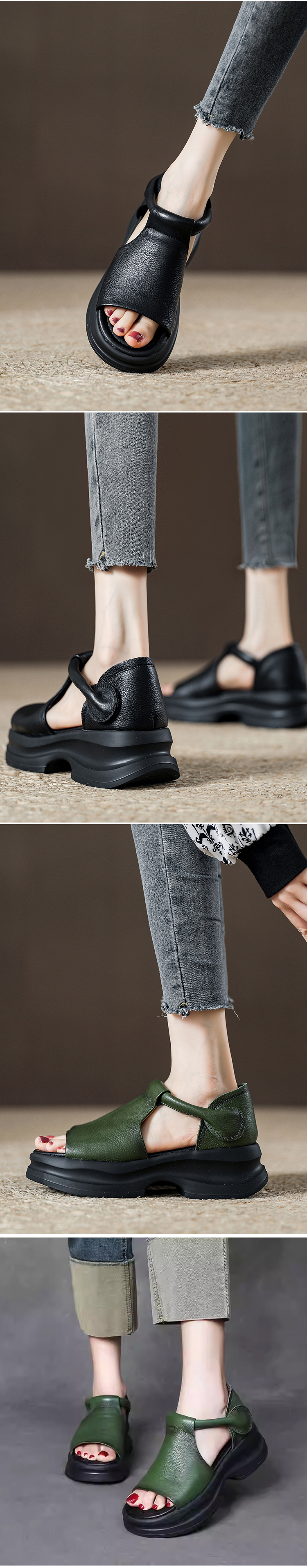 Modne sandały na koturnie z otwartymi palcami w stylu koreańskim